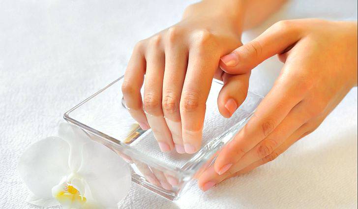 Первым этапом маникюра является размягчение тканей с использованием питательной бани. Это водный раствор эфирных масел ли мыльный раствор. Вода должна быть теплой, температура зависит от индивидуальной переносимости.