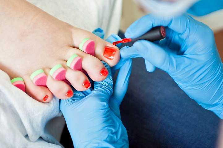 - Для начала нужно подготовить ноги и ногти к декорированию. Необходимо сделать педикюр любым удобным методом, придать ногтям подходящую длину и форму.