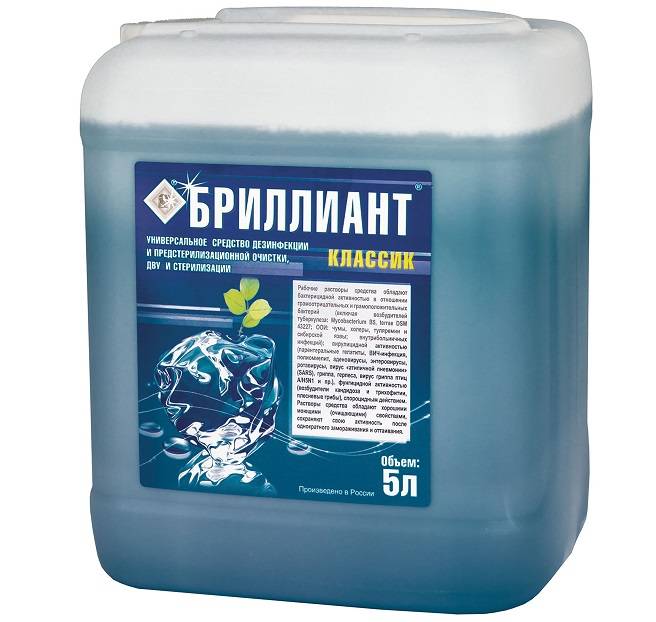 Средство Brilliant также имеет три типа активности, а именно уничтожает бактерии, разные виды вирусов и грибки. Он имеет нейтральный pH и поэтому не ржавеет на инструментах. В составе присутствуют моющие средства, благодаря чему алмаз хорошо очищает маникюрные аксессуары от частичек эпителия и ногтевой пыли.