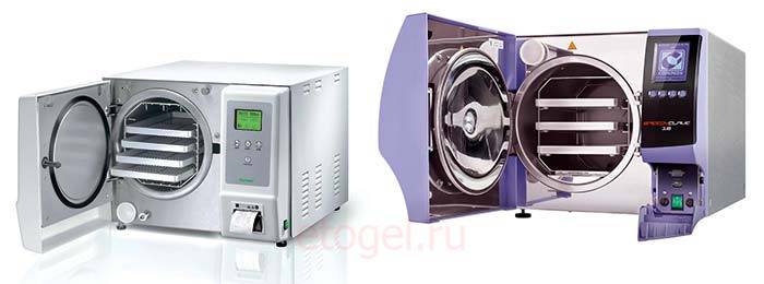 - автоклав – стерилизует паром под давлением, рабочая температура 110-140°C, давление 0,8 — 3,5 бар, микроорганизмы погибают от температуры и разрыва оболочек давлением, поэтому время стерилизации существенно сокращается (до 30 минут).