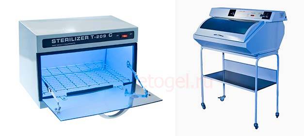 Ультрафиолетовые стерилизаторы могут справиться с несложными инфекциями и грибками, но вот убить вирус СПИДа или гепатита ему не под силу. Он отлично справляется с функцией удобного шкафчика для уже простерилизованных инструментов, способен обработать не только металл, но и другие материалы, например пластик. Для обработки придется затратить от 30 до 45 минут.