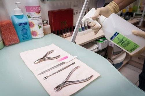 В салонах красоты к маникюру подход особый, поэтому гигиене клиента и мастера уделяется самое что ни на есть пристальное внимание. Существует несколько методов дезинфекции рабочих инструментов, но наиболее распространенным является применение различных химических средств дезинфекции. Растворы хранят в больших емкостях и располагают рядом с рабочим местом