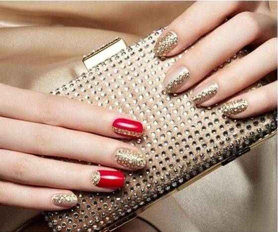 Есть множество популярных цветов, которые девушки используют для покрытия ногтей. Например, красный маникюр с использованием страз.