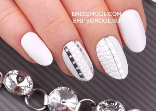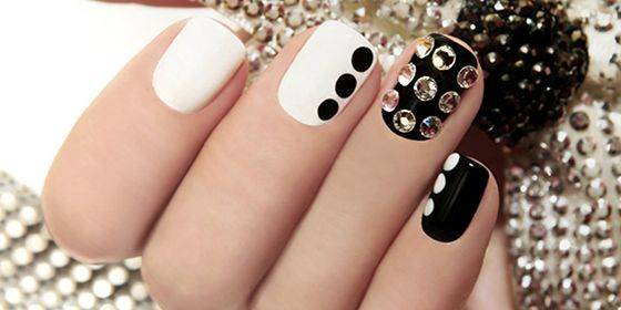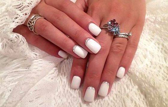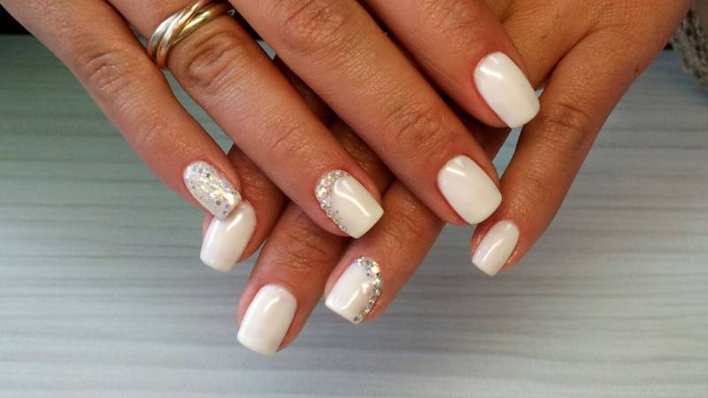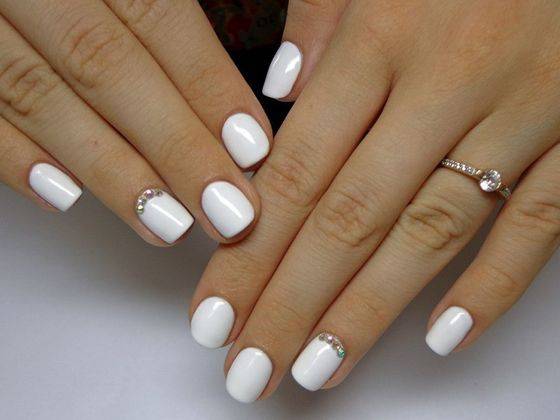 Если хотите создать классический маникюр, то отдайте предпочтение белым камушкам, а вот яркий и эффектный образ дополнят такие же стразы на ногтях.