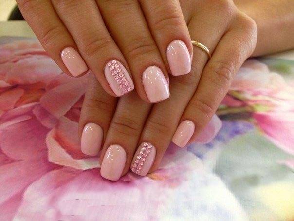 Нельзя отрицать, что естественность никому не вредит, она всегда актуальна. Нежный маникюр всегда будет уместен во всех жизненных обстоятельствах — идеально подходит для повседневной носки и для праздничного выхода. Выбрать для дополнения дизайна стразы пастельного цвета или яркого оттенка – дело вкуса, в нежном розовом маникюре уместны как однотонные цвета, так и прозрачные или контрастные тона.