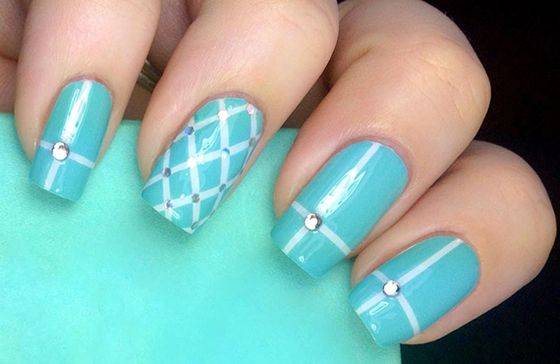 - яркий лак на ногтях: лучше украсить такой маникюр классическими, белыми камушками некрупного размера.