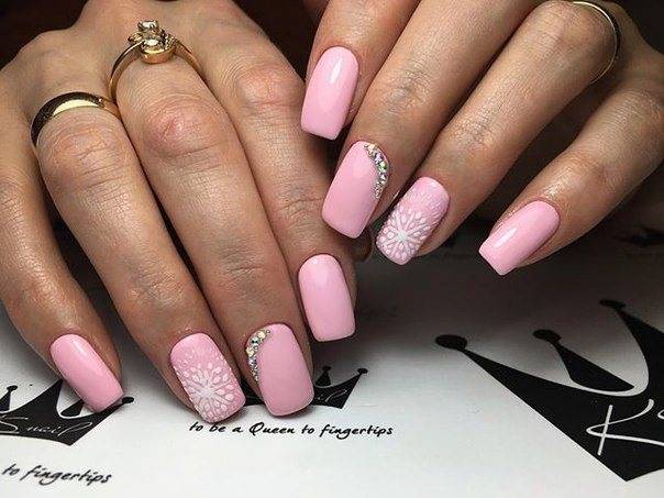 Розовый маникюр. Розовый цвет так же завоевал популярность у многих девушек. Огромная палитра тонов поможет сделать ногти от нежного минимализма до яркого праздничного маникюра.