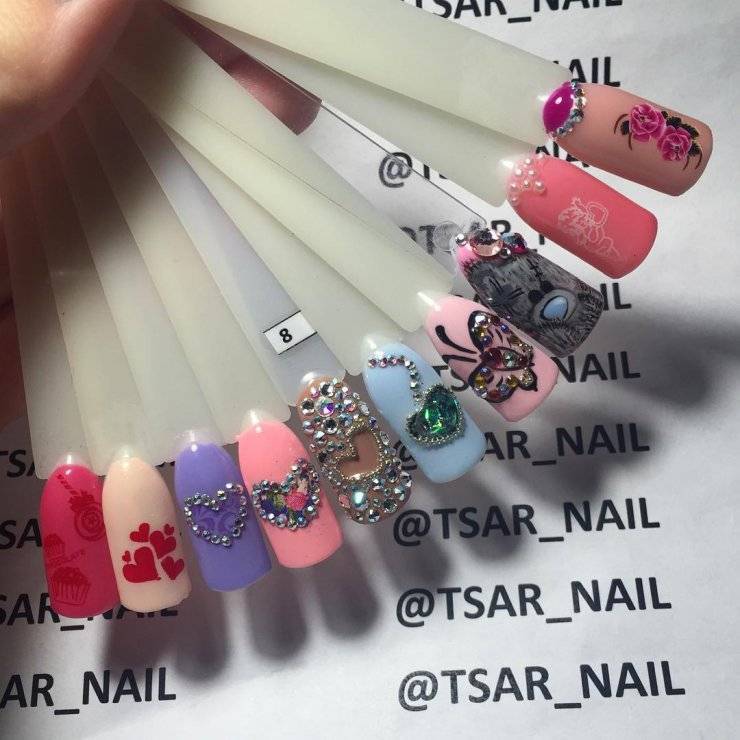 - Кристаллы, по своей форме, не должны выбиваться отдельно от общего маникюра.