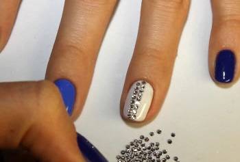 Хорошо приклеиваются они когда нанесено два слоя лака или один густой и лак еще не успевает высохнуть. Если приклеивать стразы сразу после нанесения, то они могут съехать со своего места.
