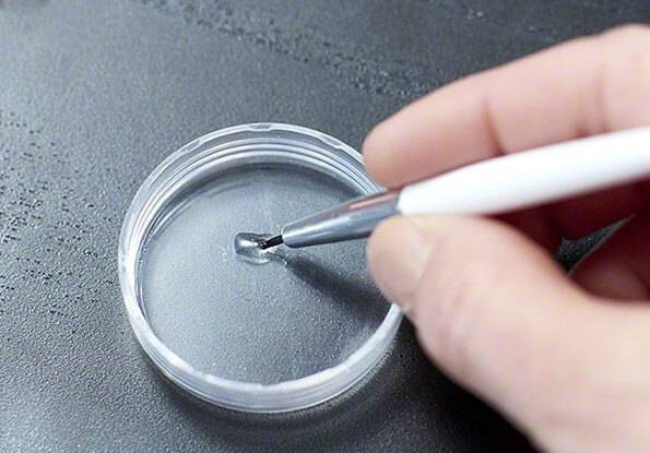- Обмакнуть кисточку в топ, предварительно налитый в отдельную емкость