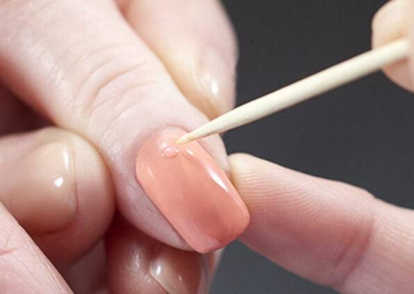 - Отметьте место прикрепления страза, оставив капельку на ногте клеем или бесцветным лаком.