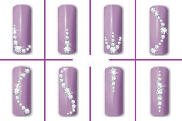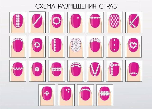 Идеи рисунков на ногтях со стразами, их расположение, фото