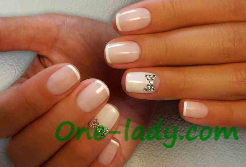 Еще один способ украсить френч – выложить орнамент на стандартном варианте, например, сердечко или бантик. Экспериментируйте, смело воплощая в жизнь свои идеи.