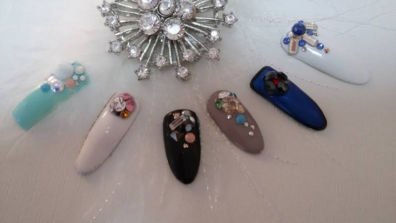 - Чем крупнее камень, тем меньшее количество таких элементов нужно для украшения. К примеру, крупного камня на весь ноготок достаточно для одной руки.