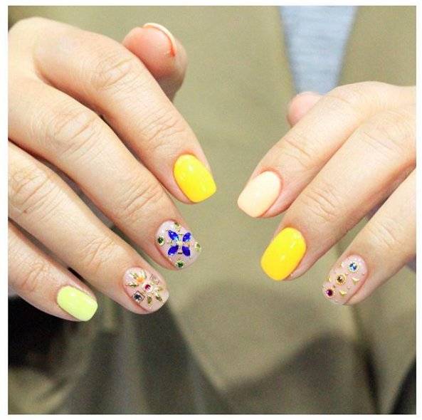 - Чаще всего для повседневной носки используют камешки нейтральных и пастельных оттенков. К примеру, цвета шампанского, прозрачные, неоновые и прочие.