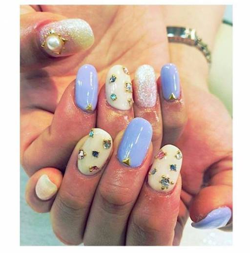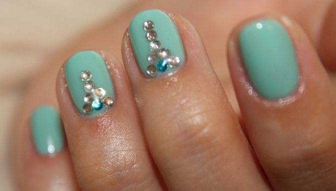 - Цвет и форма кристаллов должны соответствовать общему маникюру.