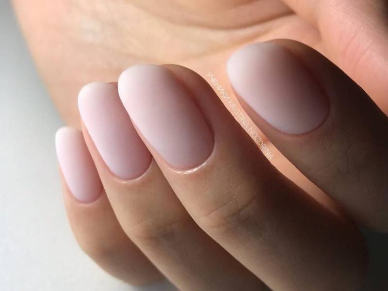 Простой, но очень стильный маникюр можно сделать путём нанесения нежного, скромного покрытия. Особую утончённость ручкам придаст нюдовый дизайн baby nails в телесных и розоватых тонах.