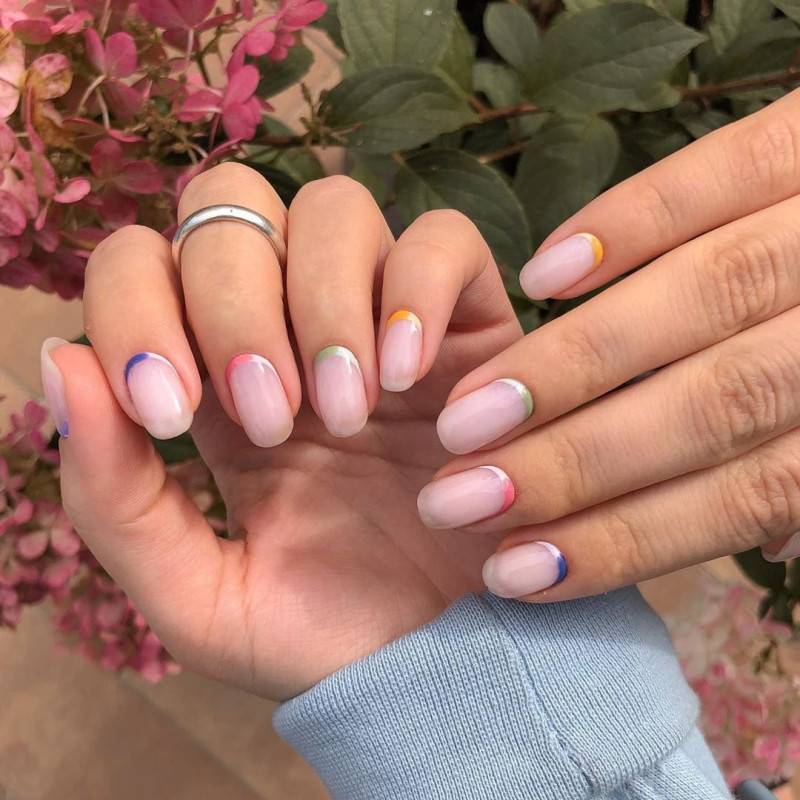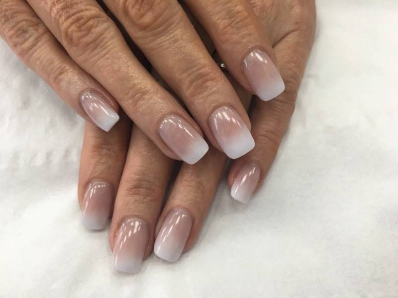 При выборе цветов для градиента стоит обратить внимание на белый, молочный, светло-розовый или другие тона растяжки
