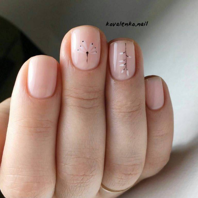 Для праздничного или повседневного нейл-ухода ноготки с нежным оттенком вполне можно украсить минималистичными рисунками