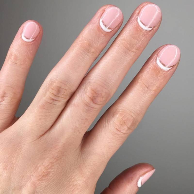 Рисовать двойной френч с тонкими полосками придумал лондонский нейл-мастер Эмбер Харрис. Идея пришла талантливой девушке в голову не случайно — ее вдохновил маникюр с прошлогодних показов Prabal Gurung и Khaite. Там модели ходили по подиуму с тончайшими полосками белого френча на ногтях.