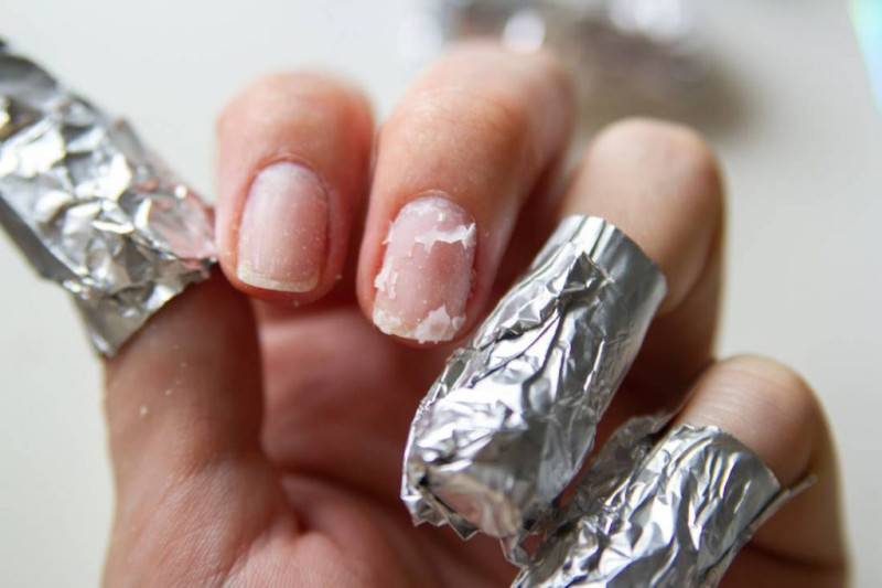 Первый подразумевает пропитывание декоративного покрытия средствами с растворителем в течение 10-15 минут. После размягчения слой гель-лака можно оттереть с ноготков.