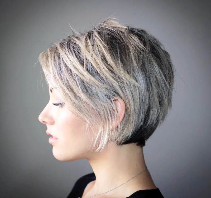 Такое выполнение придает роскошный дополнительный объем тонким волосам. И хотя, на таких волосах практически невозможно сделать толстую линию среза, правильная рука мастера может выполнить очаровательную легкую прическу.