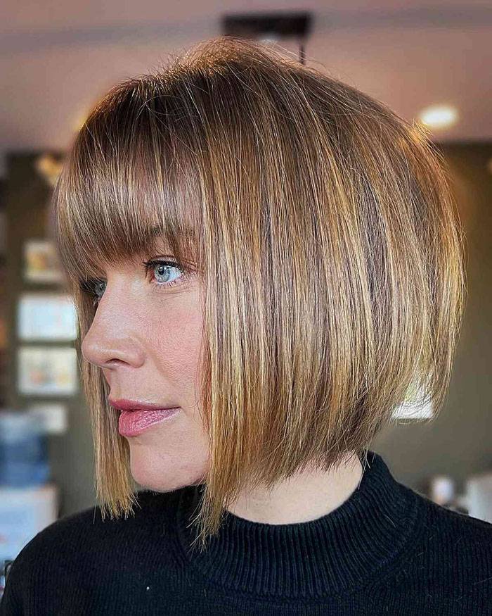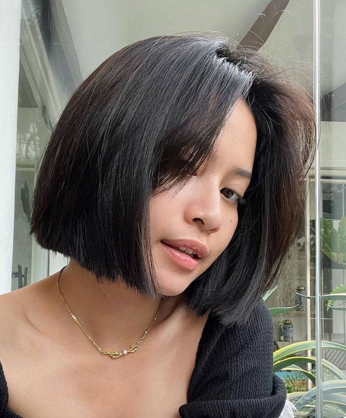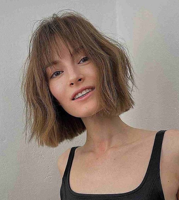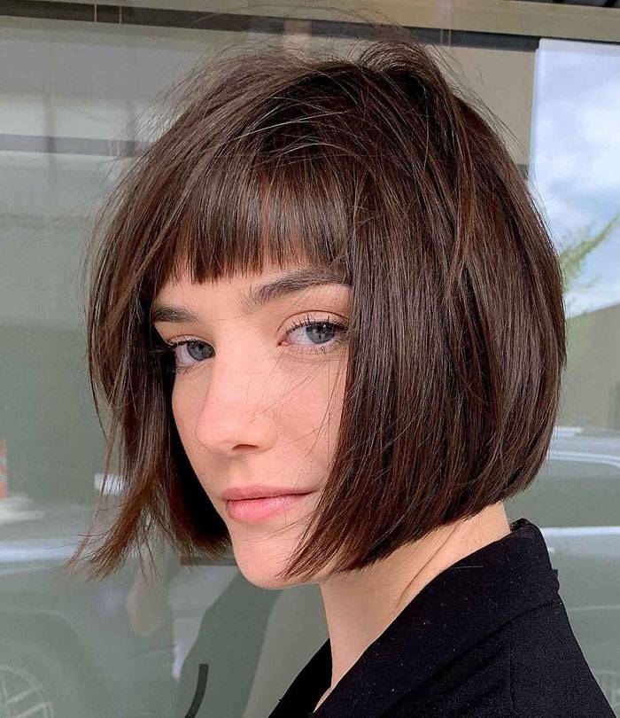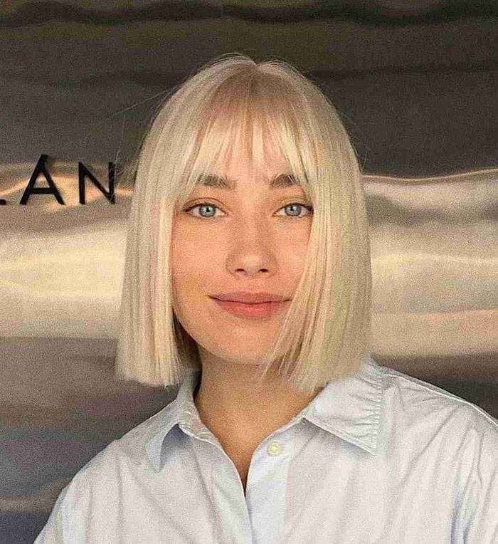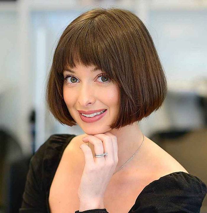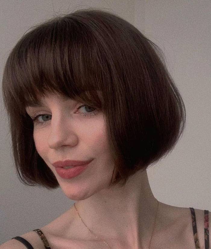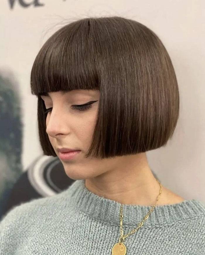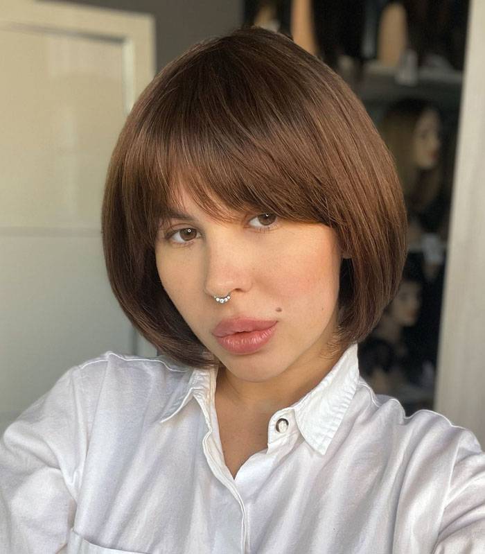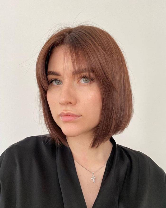 Невозможно устоять перед классической стрижкой каре боб с прямой челкой. Эта утонченная и культовая прическа элегантно обрамляет лицо и подчеркивает черты. Прямая челка до линии бровей идеально подходит девушкам с любой формой лица и придает образу лаконичный шик.