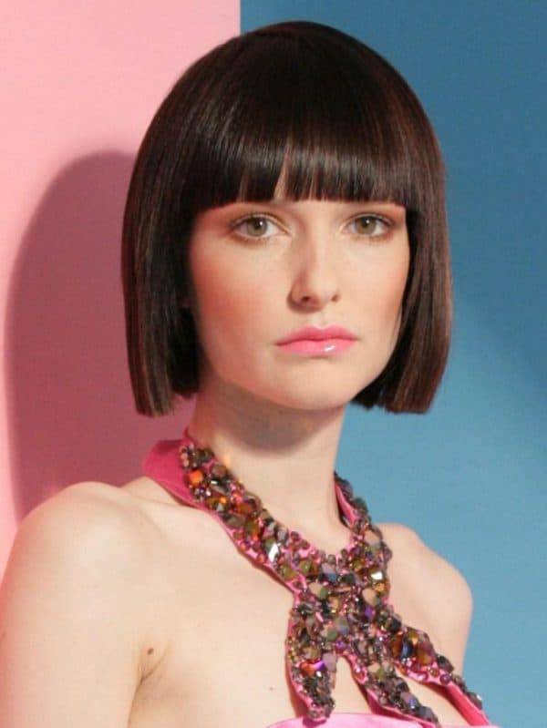 - Короткая. Среди фаворитов года — эффектная короткая челка, которую можно подобрать к любому наряду.