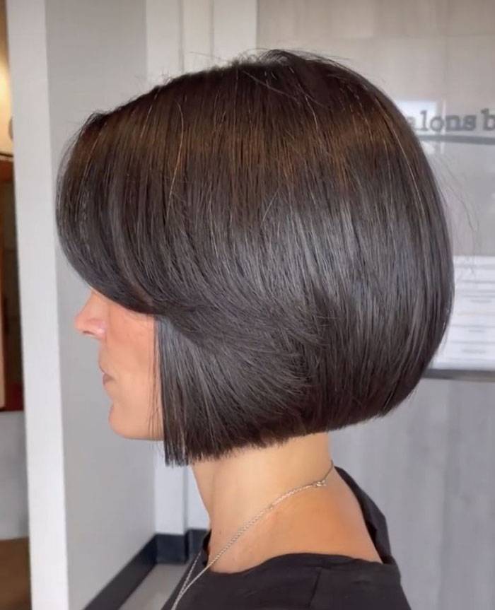 Такое выполнение прически объединяет классический боб и известный «каскад» (лесенку). В итоге стрижка выходит многоступенчатой и четко структурированной.
