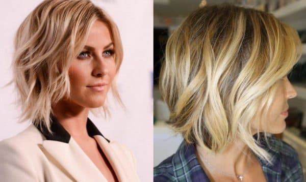 Такое выполнение стрижки боб-каре придает роскошный дополнительный объем тонким волосам. И хотя, на таких волосах практически невозможно сделать толстую линию среза, правильная рука мастера может выполнить очаровательную легкую прическу. При осветлении корней волос Вы сможете получить воздушный и молодежный вид собственной внешности.
