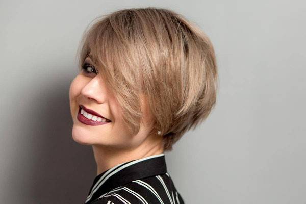 - Короткая прическа в классическом исполнении идеально подходит девушкам с овальной и треугольной формой лица.