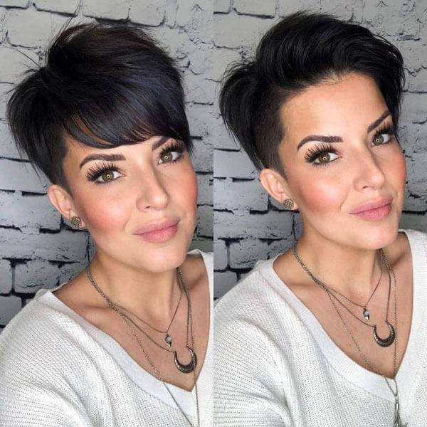 - Круглолицым девушкам подойдет пикси с выбритыми висками.