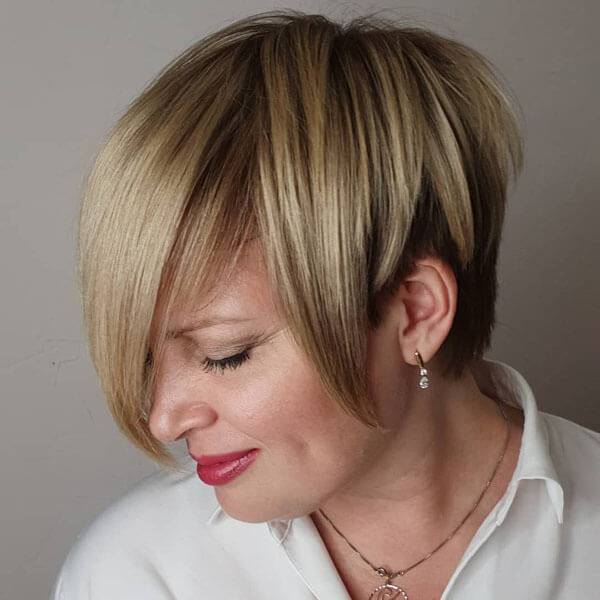 Женщинам, выбирающим пикси-боб на средние волосы, стрижка поможет выглядеть моложе. Для этого рекомендуются сдержанные цвета или сложное окрашивание. Темная гамма способна добавить не один год, поэтому от нее лучше отказаться.