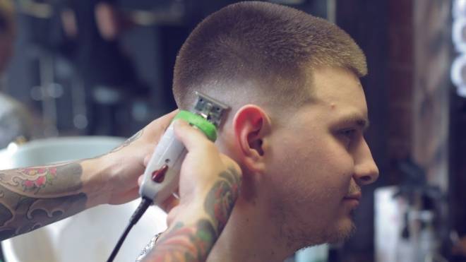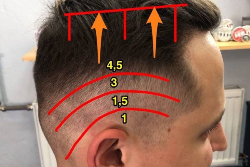 - Волосы, расположенные до перехода, коротко остригите с помощью машинки.