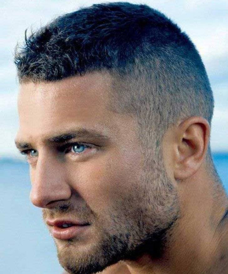 - Цвет волос – любой (но, выигрышнее всего эта мужская короткая стрижка смотрится на блондинах и шатенах).