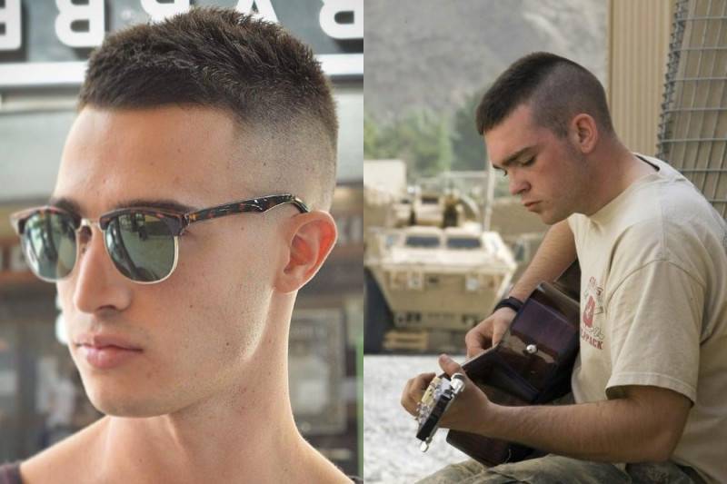 Армейский. Предполагает минимальную длину волос. Образ смотрится весьма смело и мужественно. Челка убирается, окантовка делается по максимуму высоко.