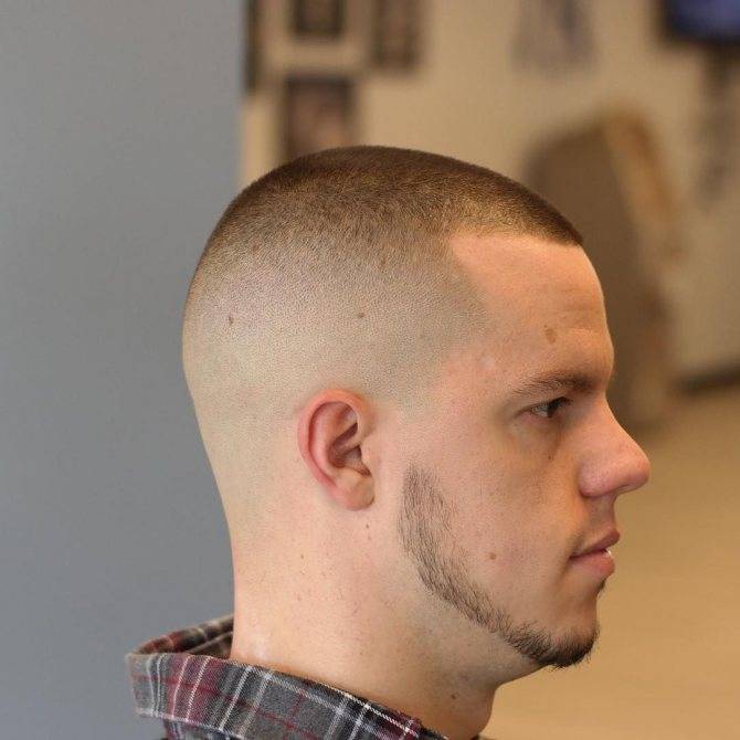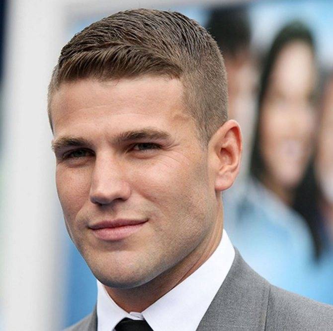 Укороченный вариант прически является классическим. Именно его мы часто можем видеть у спортсменов. Виски и затылки в данном случае стригутся под 1 см или вовсе под ноль. На макушке остается до 2 см.