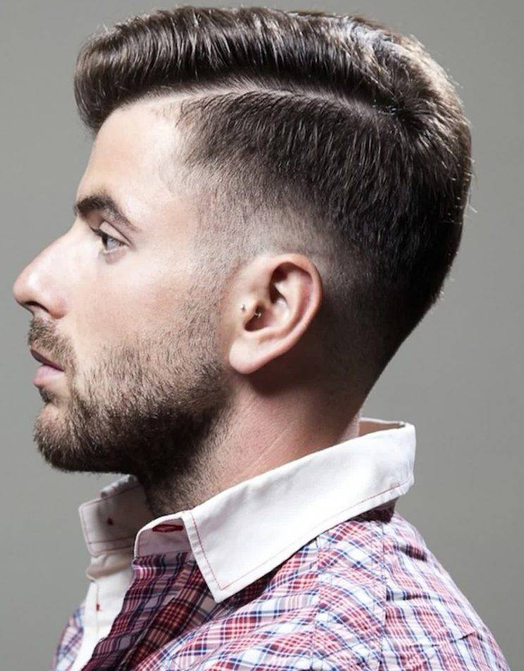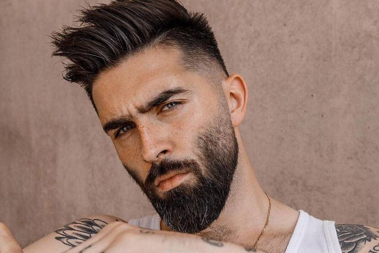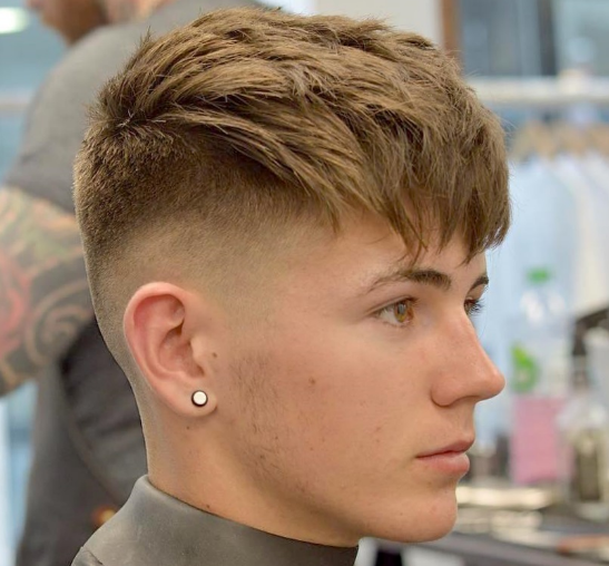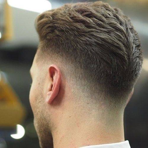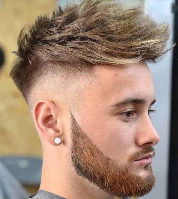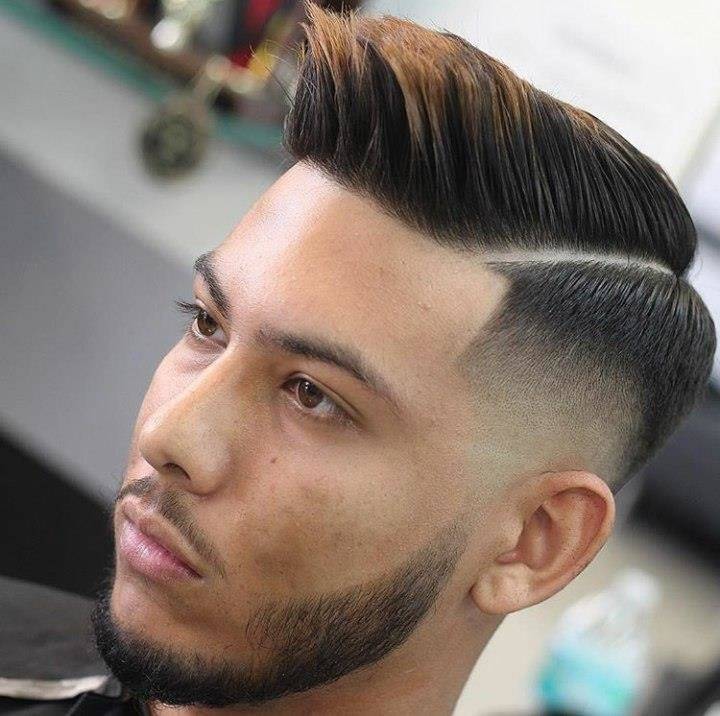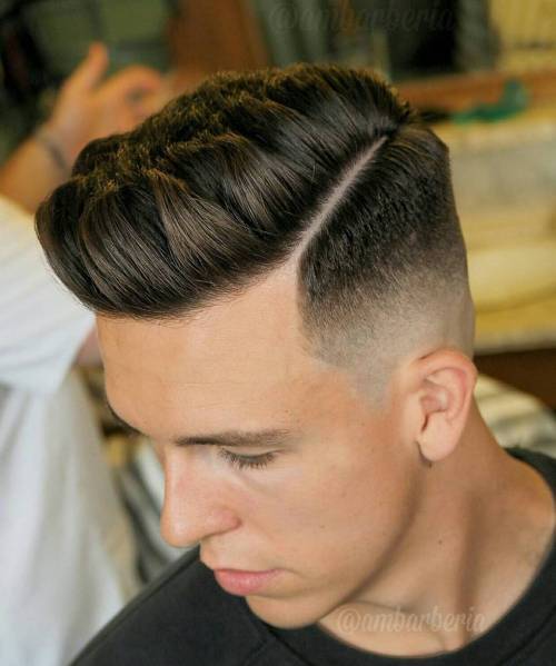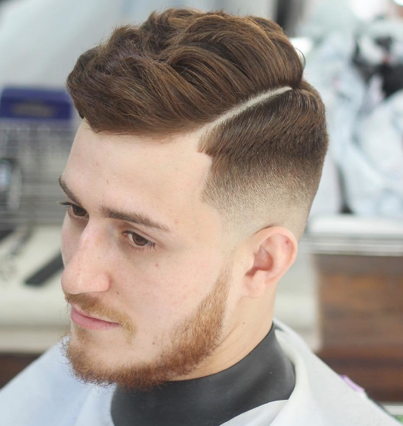 Это компромисс для тех мужчин, которые не хотят слишком короткую стрижку, но и к удлиненному варианту относятся настороженно. Такой вариант не менее мужественный, чем короткая прическа фейд. Волосы короткие сзади и по бокам – длинная часть находится выше ушных раковин. Прическа выглядит линейно, однако, при желании, можно и скреативить. К примеру, уместен выбритый пробор или зачес челки назад. Таким фейдом раньше подстригали военных, однако сегодня стрижка пользуется спросом у лиц любой направленности в работе.