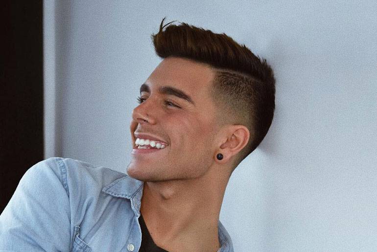 Главная отличительная особенность высокой мужской стрижки fade – контраст коротких волос по бокам головы и длинной шевелюры на макушке. Линия резкого перехода находится чуть выше углов висков. Остальная нижняя часть волос либо стрижется коротко, либо выбривается полностью. Резкость перепада длин волос — около 5 см. С резким переходом стрижка выглядит дерзко и точно.