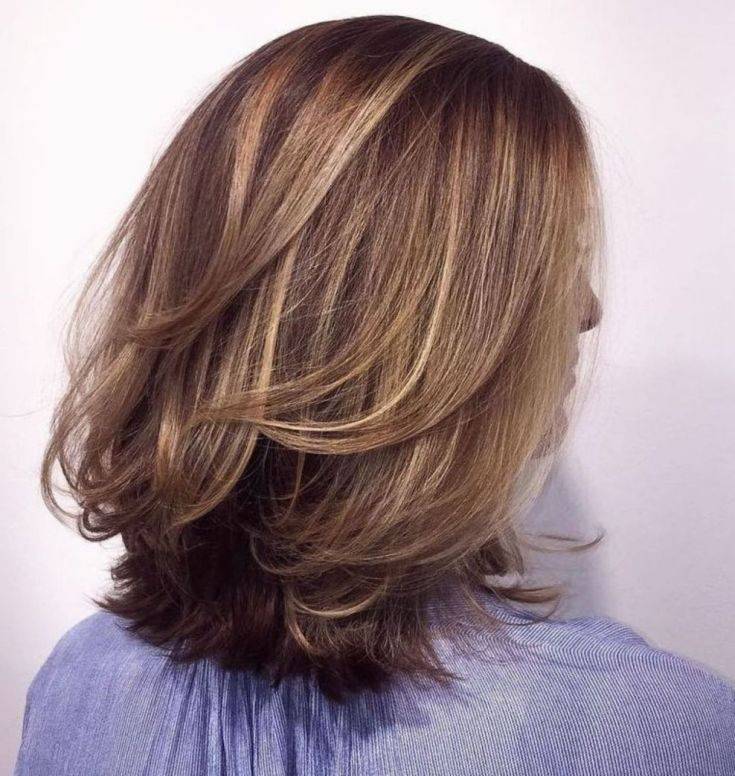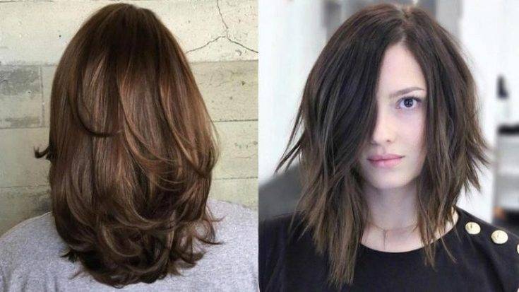 Ступенчатая стрижка с квадратными слоями выполняется на густых средних или длинных волосах. Уменьшая нижнюю часть, делает акцент на всем лице. Со спины смотрятся очень красиво
