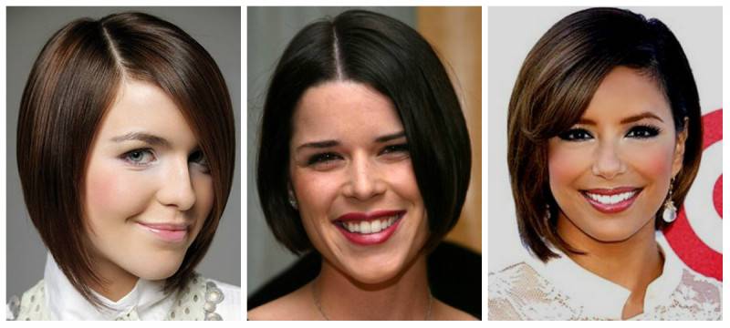 подойдет короткий боб с объемной макушкой. Это визуально сгладит разницу между верхней и нижней частью головы.