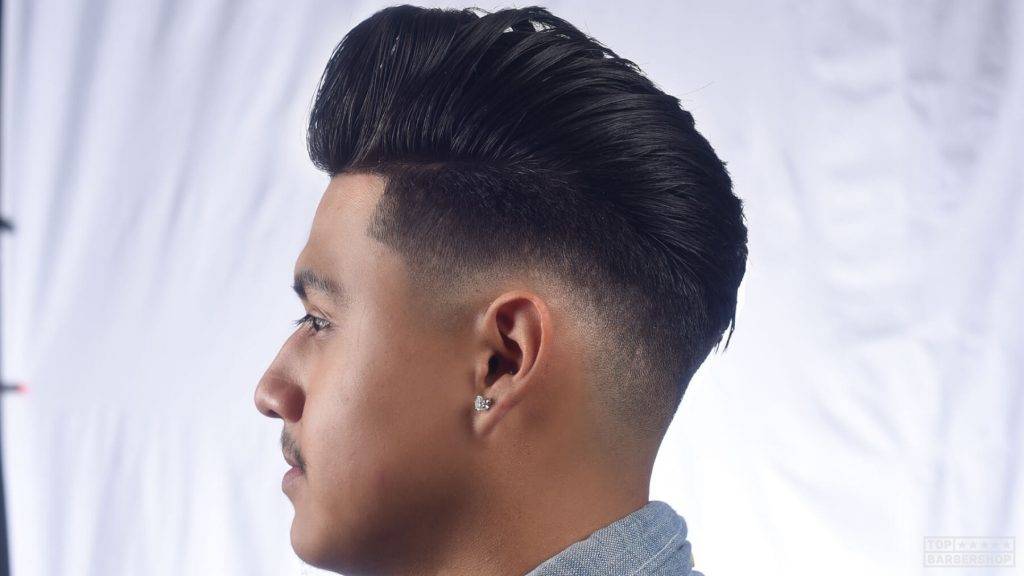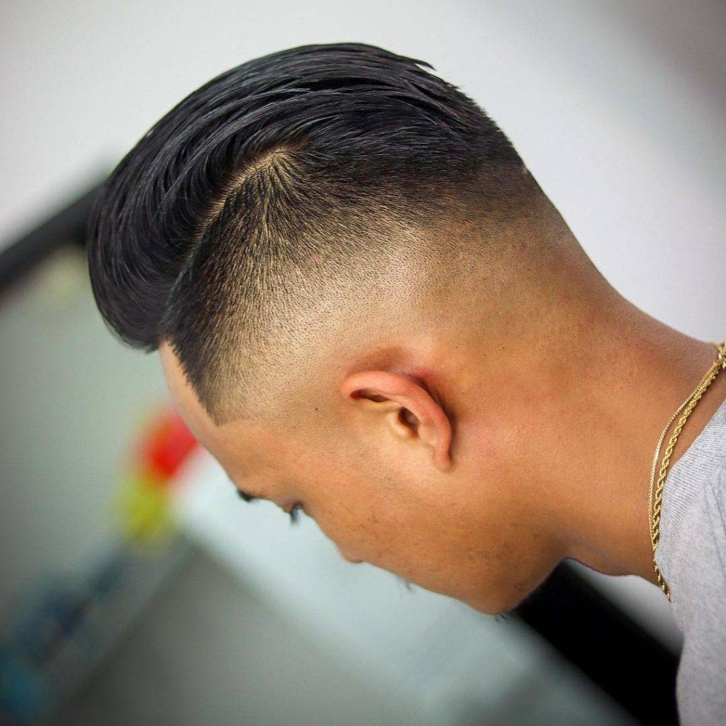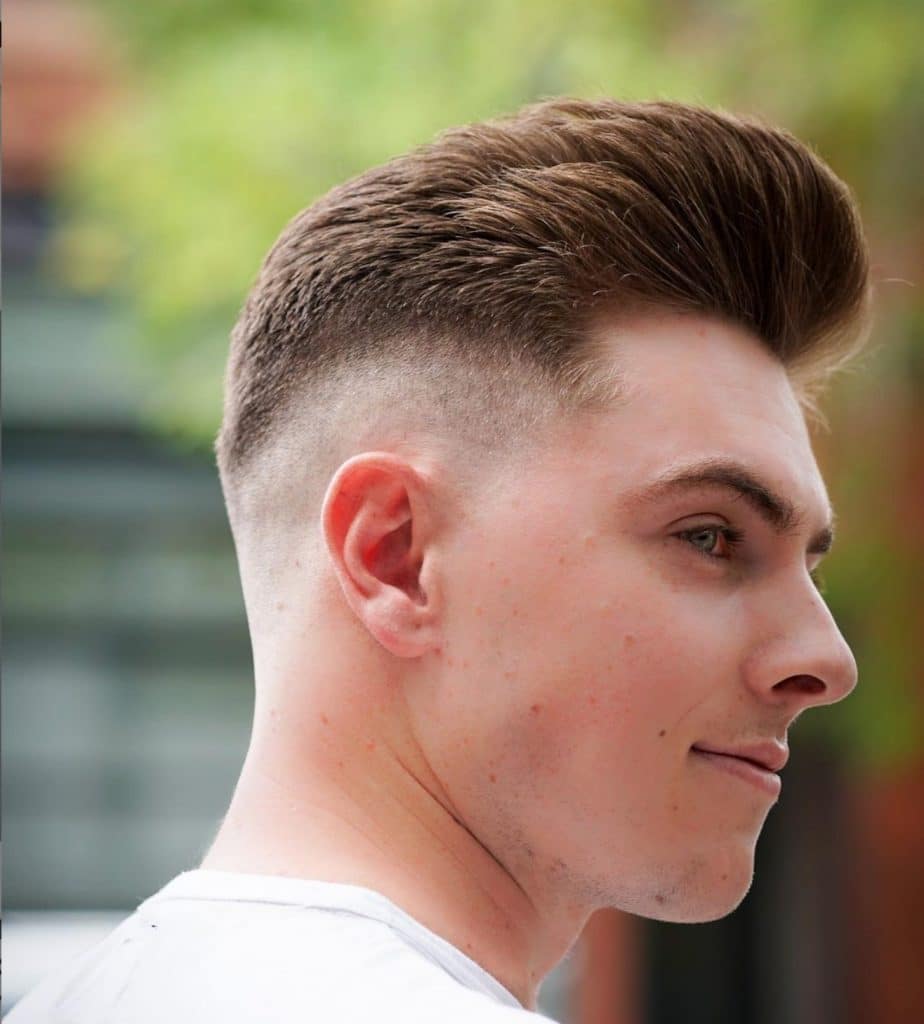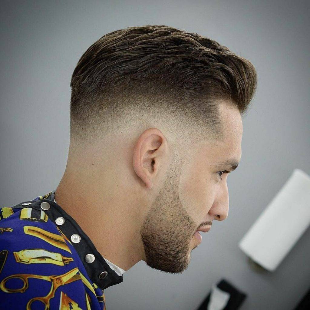 Это компромисс для тех мужчин, которые не хотят слишком короткую стрижку, но и к удлиненному варианту относятся настороженно. Такой вариант не менее мужественный, чем короткая прическа фейд. Волосы короткие сзади и по бокам – длинная часть находится выше ушных раковин. Прическа выглядит линейно, однако, при желании, можно и скреативить. К примеру, уместен выбритый пробор или зачес челки назад. Таким фейдом раньше подстригали военных, однако сегодня стрижка пользуется спросом у лиц любой направленности в работе.