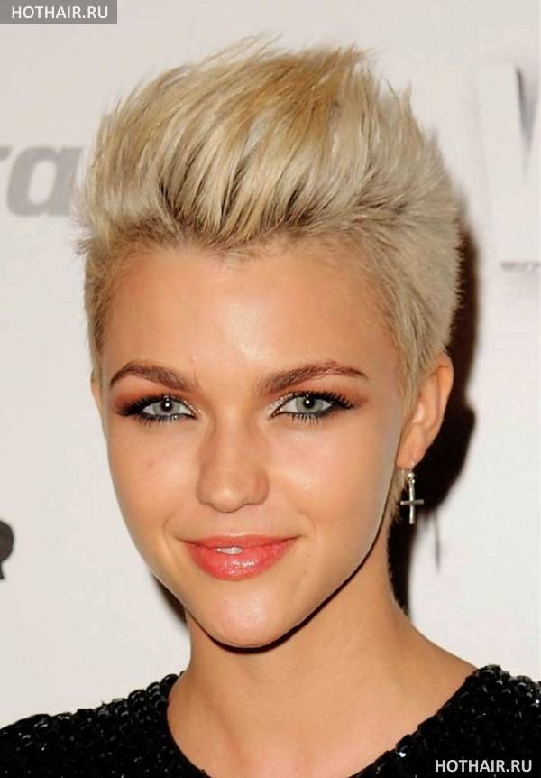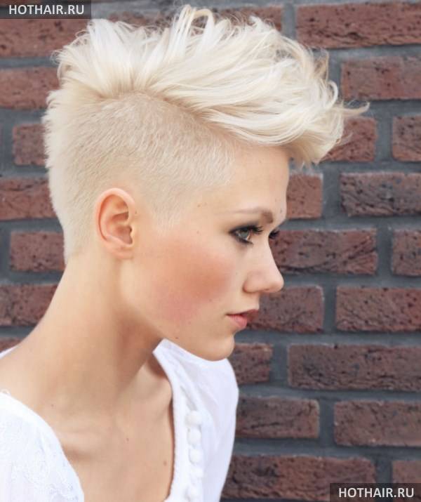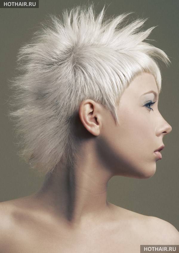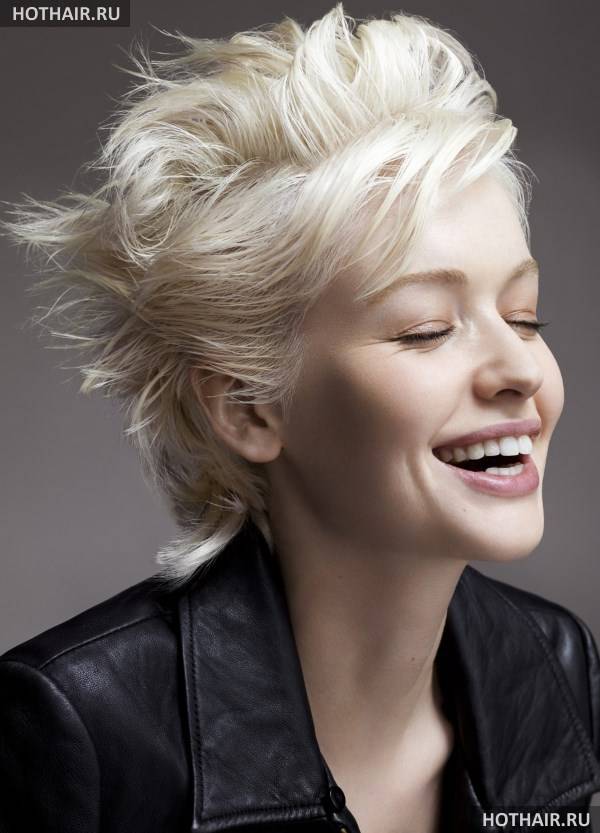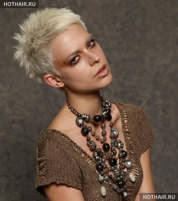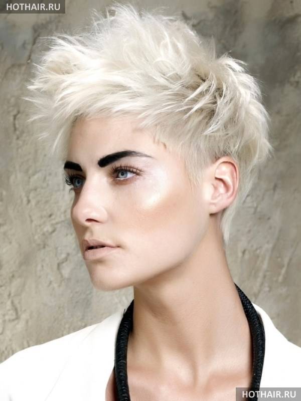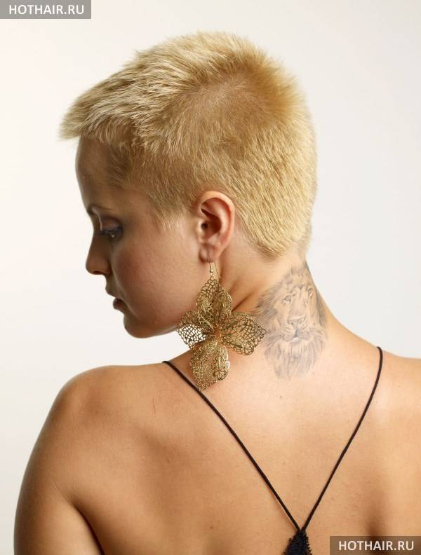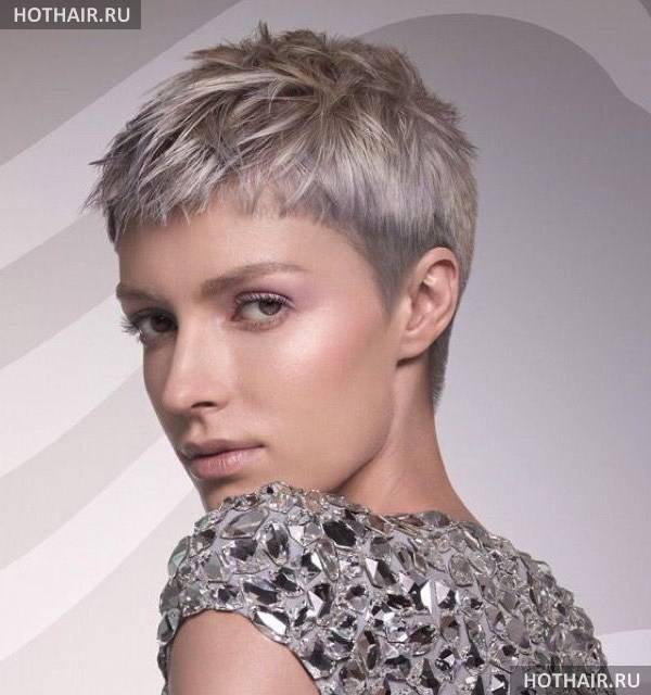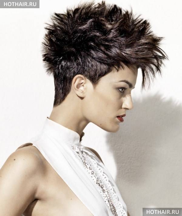 Это дерзкая вариация женской стрижки на короткие волосы ежик, когда пряди выстригаются коротко на затылке и вокруг лица. Если голова у дамы небольшая, красивой формы, всю шевелюру поднимают, направляя перпендикулярно черепу или строго в одном направлении