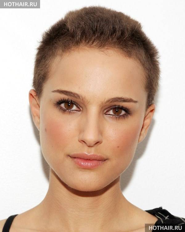 В коротком классическом ежике волосы на макушке едва превышают 1-2 см. Зато благодаря четко подобранной длине стрижка не требует укладки, волосы сами стоят на макушке без утяжеления в виде собственного веса. Ярким примером среди звезд является Натали Портман, которая не раз появлялась на публике в таком образе.