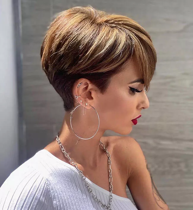 Овальная форма лица — подойдут все трендовые короткие стрижки, с челкой или без. При стилизации овальных форм лица выбирайте слои, которые будут красиво обрамлять лицо, и четкие линии, чтобы выделить скулы и подбородок. Самая привлекательная форма лица для пикси — овал с миниатюрными чертами.