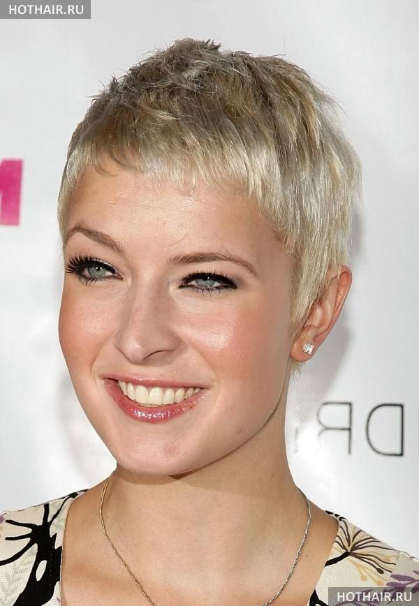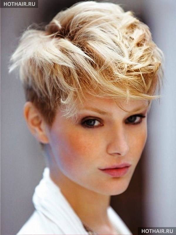 Круглолицым дамам лучше выбирать вариант с пышным затылком, челка наискосок скрывает пухлые щеки. Хорош ежик на макушке – затылок и виски состригают до минимума, тогда как на макушке оставляют пряди подлиней. Вариант стильный, но его непросто укладывать, без косметики для фиксации не обойтись.