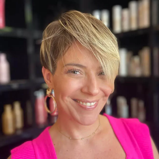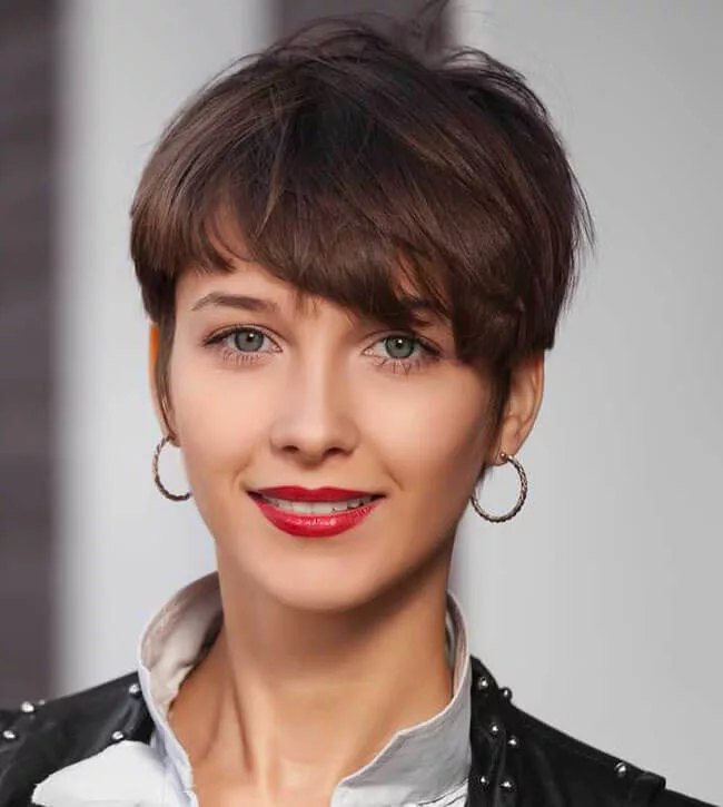 Для квадратной формы лица подойдет пикси с удлиненной челкой, которая сгладит пропорции.
