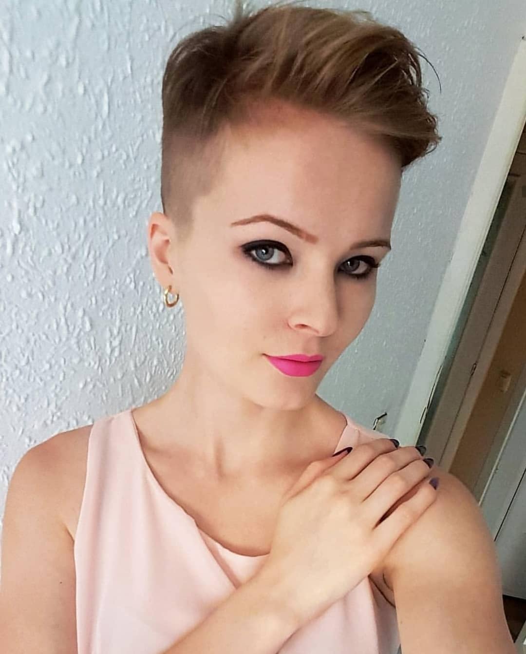 чтобы со стрижкой ежик выглядеть соответствующе, следует всегда наносить макияж;