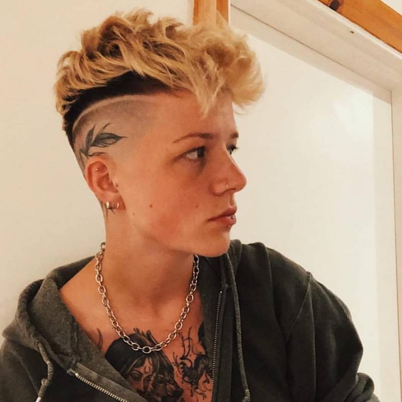 Уложить прическу такого формата можно по-разному: просто взъерошить пряди в беспорядке, зализать с помощью геля, закрутить кок, сделать ирокез. Для вариаций с выбритыми висками популярна дополнительная декорация оголенных областей с помощью выстриженных рисунков, татуировок.
