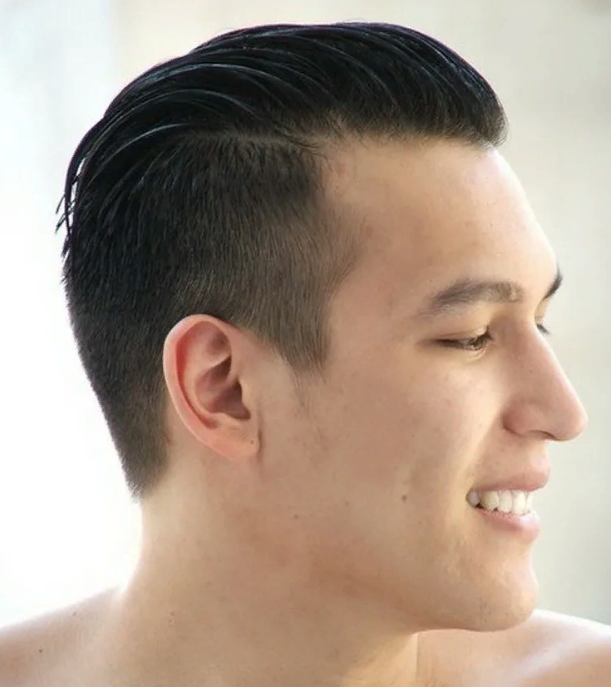 Боковые части волос сбриваются максимально коротко, при это необходимо достичь одного размера локонов по бокам. Большая часть волос не должна иметь длину меньше 10 см, не рекомендуется это из-за того, что волосы не уложатся правильно, и причёска не продержится необходимое время. Именно боковые пряди и придают форму. При стрижке чёлку немного укорачивают. Такая причёска идеально подойдёт:
